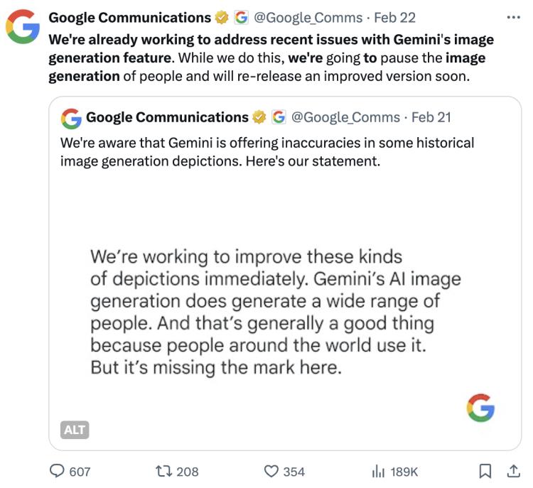 千呼万唤中,谷歌公关再次道歉:"Gemini image generation got it wrong. We ’ ll do better."