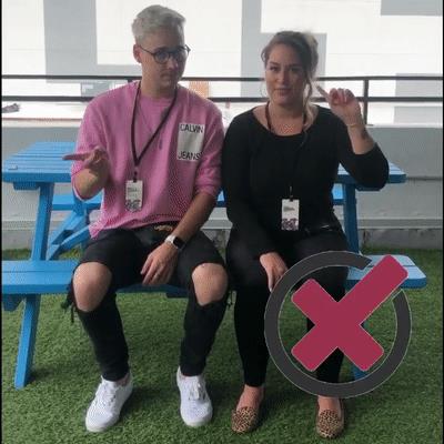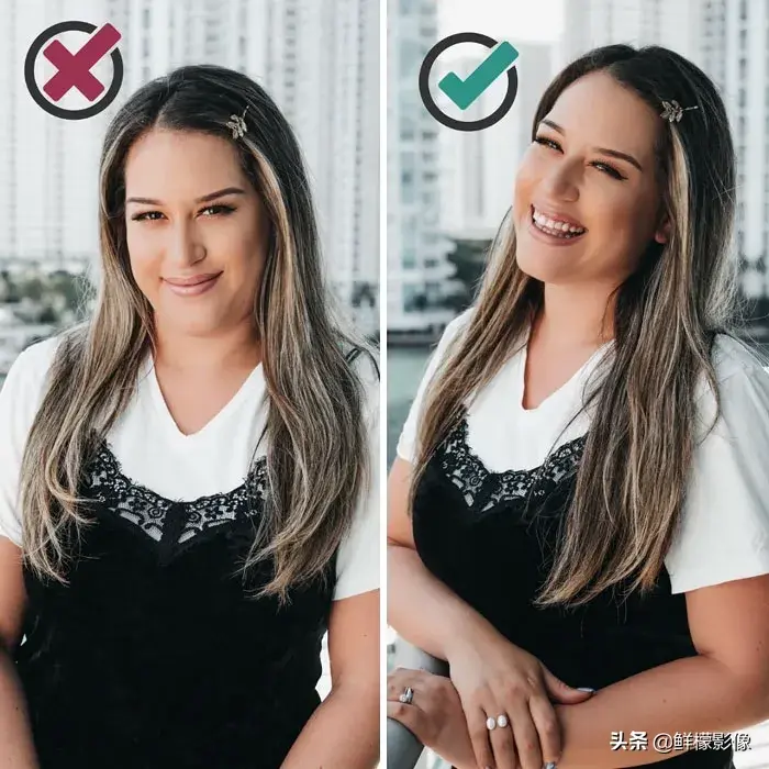 左边的照片基本上都有些局促,而右边开放的姿势,会显得更自信,