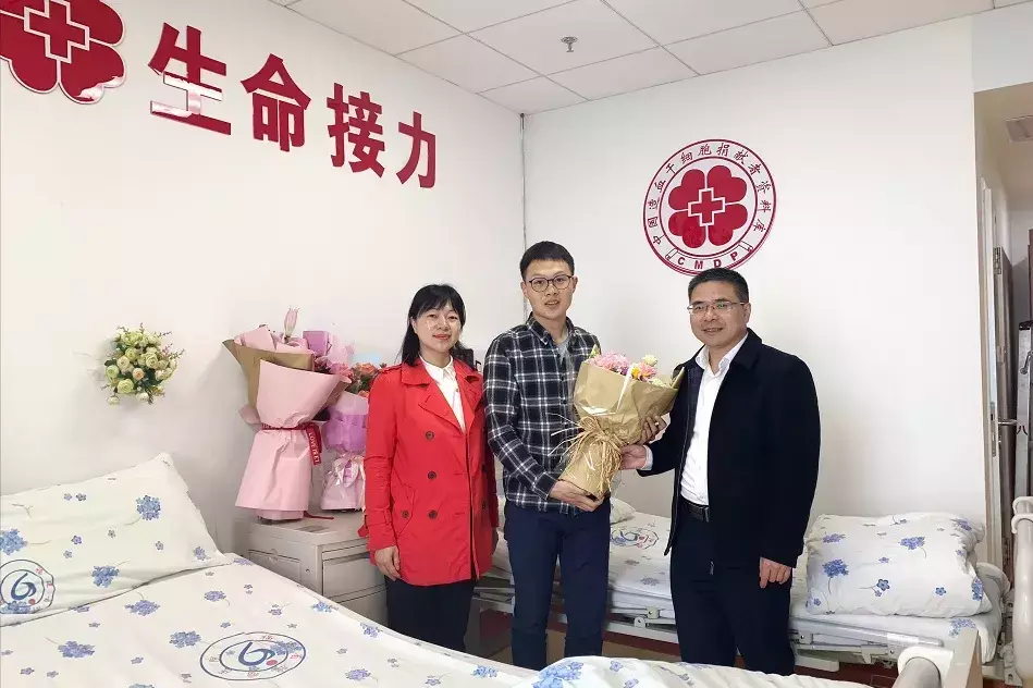 4月16日下午,三明市红十字会、梅列区红十字会和公司领导前往三明北动车站迎接刚刚捐献归来的马伯乐,三明市红十字会常务副会长、梅列区人民政府副区长一行来到公司慰问,为他送上了鲜花和慰问金,感谢他为文明城市再添新的光彩,公司党委书记和工会主席出席了欢迎会。