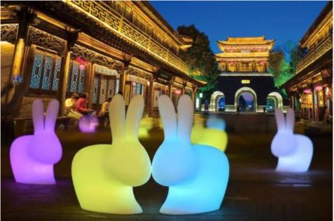 特色灯组三:意大利网红“月光奇宝兔”卡通艺术展。本次灯会,意大利网红“月光奇宝兔”卡通艺术展也将登陆峡山。白天,游客可以坐在兔椅上休息,拍照卖萌,游戏互动。当夜幕降临,奇宝兔就会被点亮,变身月光奇宝兔,透出斑斓的色彩,闪闪发光、萌化人心,整个公园仿佛变成童话般的奇幻世界。游客们可以在此享受恋爱、亲子卡通艺术嘉年华。