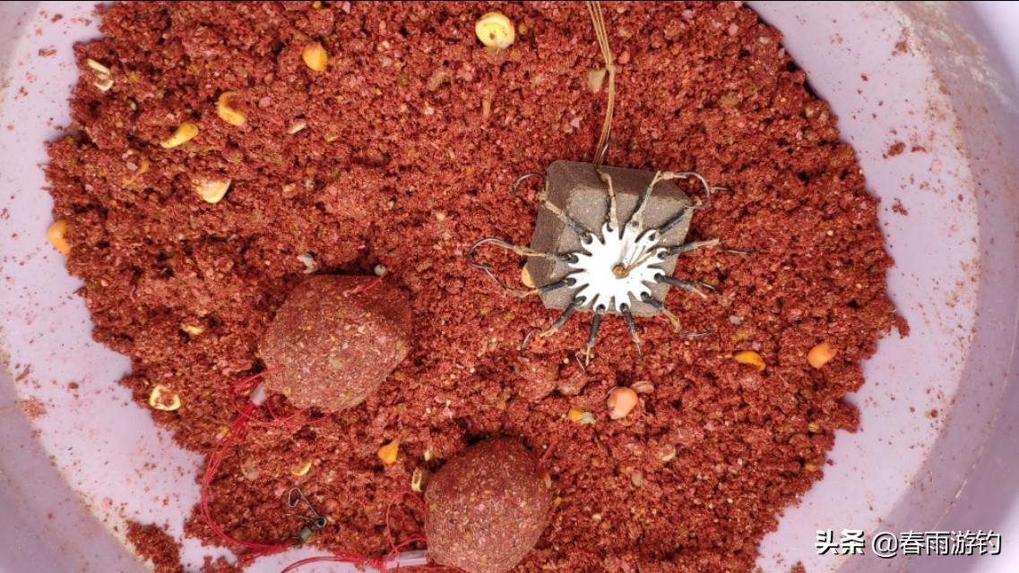 窝料的选择以及使用方法,在窝料的选择上,我会尽量的选择散窝,再根据水域的深浅以及季节的变化,选择窝料的味型和湿度,比如,取小鸡饲料半斤,或是打窝颗粒,用水泡制,水比,没过饲料即可,泡散之后,添加腥香饵料,比如海藻粉,蚯蚓粉,红虫粉,南极磷虾粉,以及各种商品饵料,(注:散窝的水比很少,类似于爆炸饵,用力地用手攥成团,入水后几秒既散落)散窝的好处,诱鱼快,可应对复杂地形,比如水下陂陡,坏处是招小鱼,或鲢鳙,因此,在小鱼多,有鲢鳙的情况下,我们尽量选择用谷麦,或是发酵玉米,或是雾化缓慢的红虫颗粒,鸡鸭饲料,窝料要少打,随时少补。