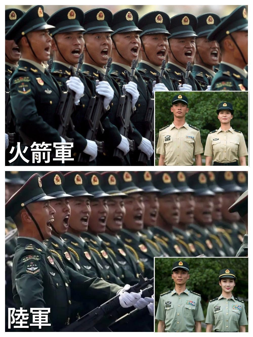 火箭军的军服与陆军乍看起来很相似,但细看可以发现,两者的绿色稍有不同,衬衣颜色也不一样