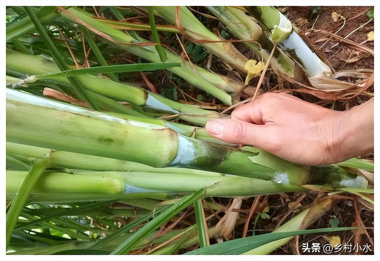 2、甜象草像甘蔗一样用种茎栽培(不用种子栽培),我们把带腋芽的种茎切下来,然后保持50公分的间距斜着插入土壤中或者横埋入土壤中,种植后7~10天即可出苗。