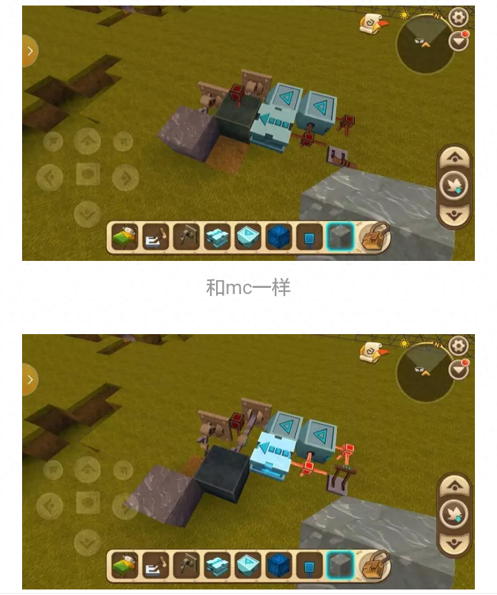 第三张:迷你世界的电机石科技和我的世界的红石科技对比图!