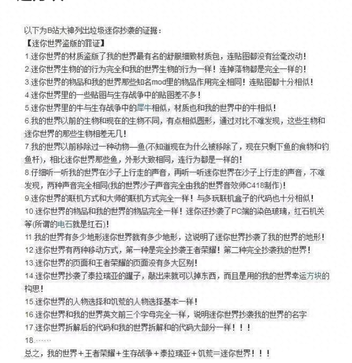 迷你世界抄袭我的世界这是事实,但是呢?口说无凭,现在就让我们来看看迷你抄袭我的世界和其他游戏的部分证据!