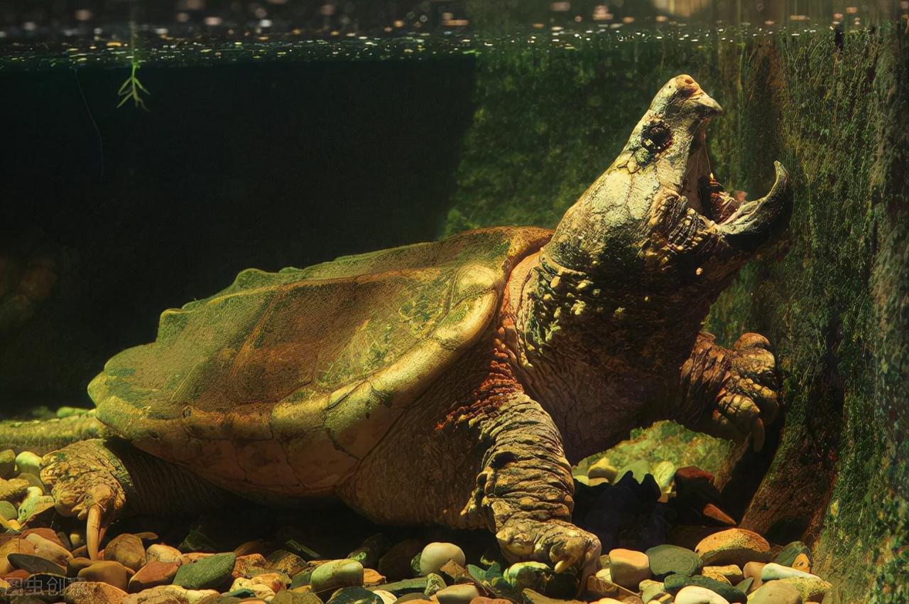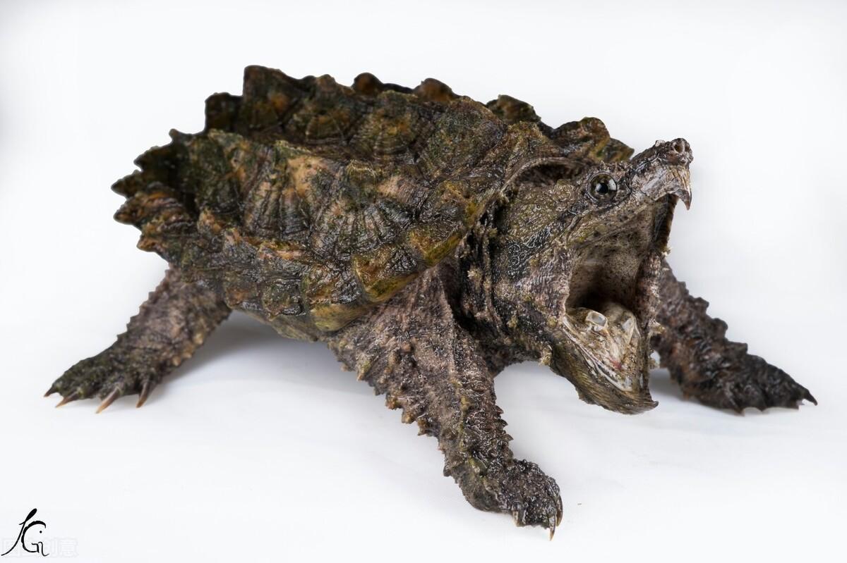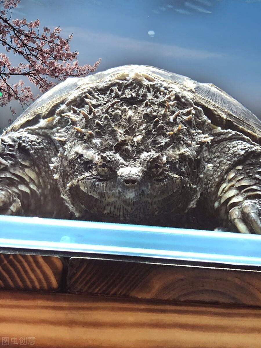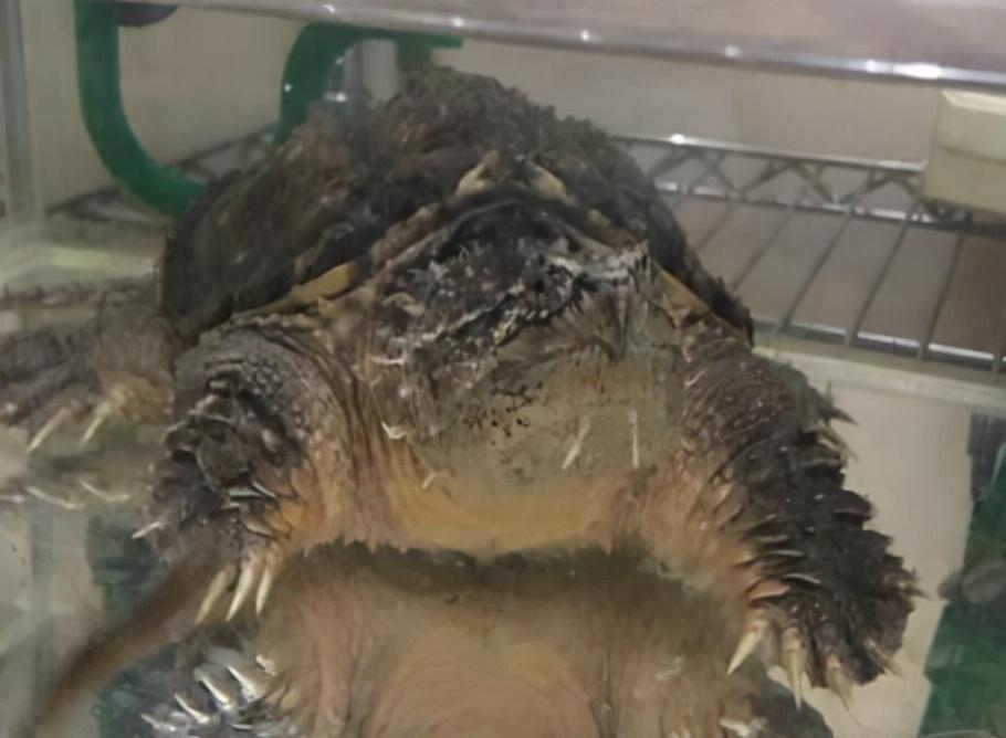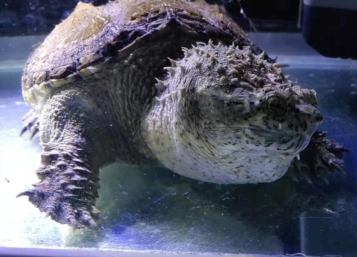 北美鳄龟,注意看头部。头上都是没有刺的。肉疙瘩不是刺(肉瘤)。