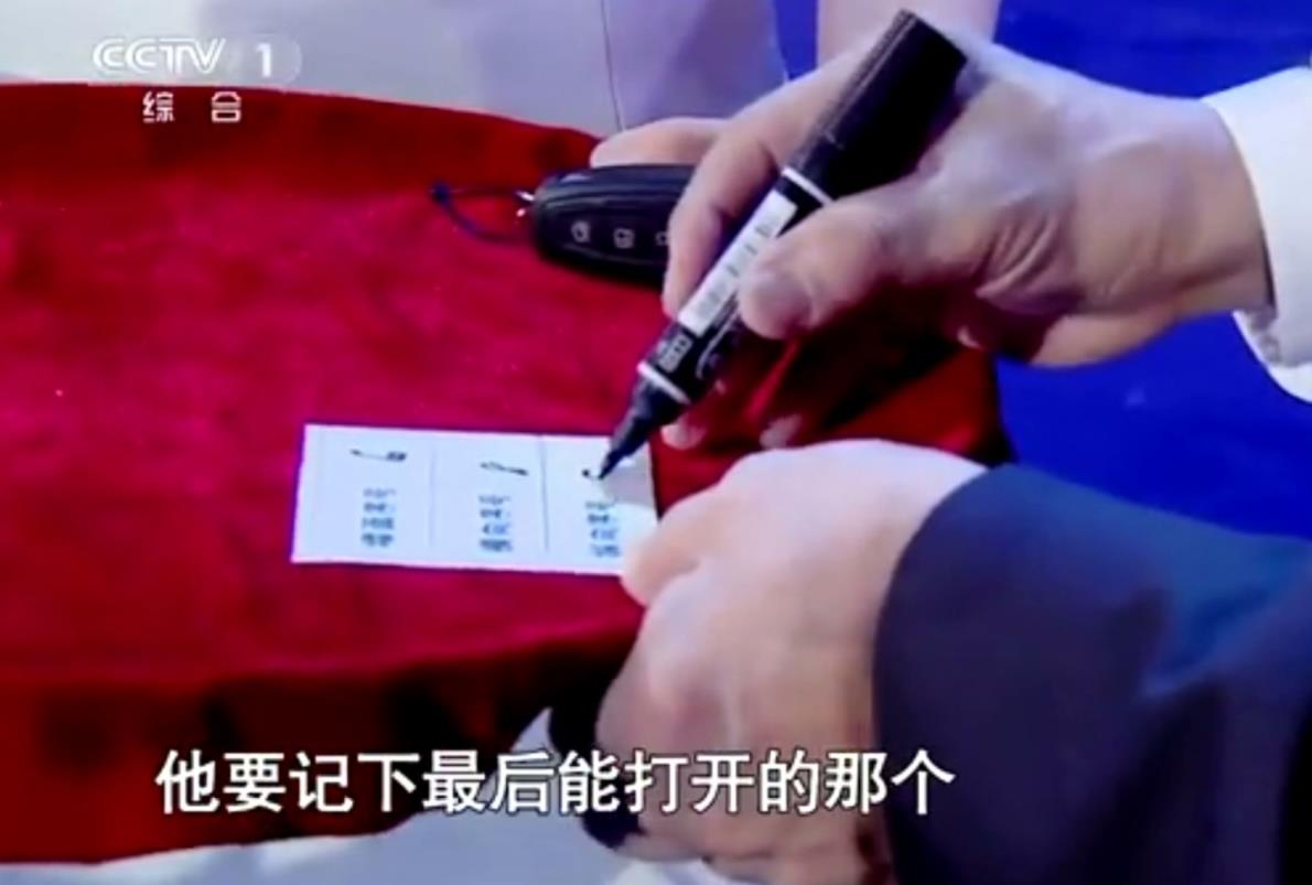 当时,节目组放了很多排车钥匙,然后让李昌钰把真的车钥匙放在其中,李昌钰躲过镜头,连续调换了很多次钥匙的位置,然后他在众目睽睽下走到了一旁的桌子,写下了真钥匙所在的位置“689”。