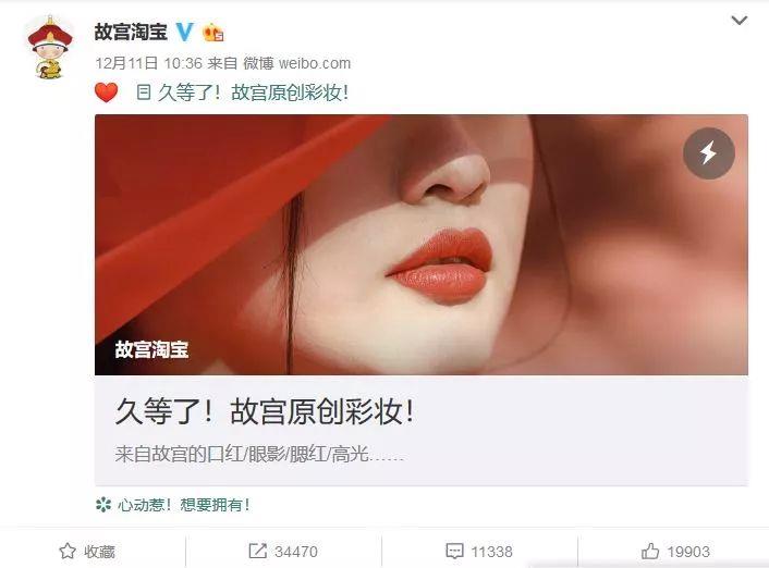 当天晚上23时许,“故宫淘宝”在微博上对此发言,“目前市面上见到的所有彩妆并非我们所设计,来自故宫淘宝的原创彩妆,我们周二见”,一并转发了它在2017年4月所发的微博文章《假如故宫进军彩妆界》。文中所提的口红色号,和“文创版”故宫口红有所重合。