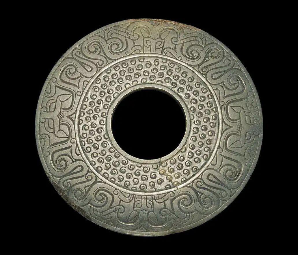 与之近似的玉器还有玉瑗,玉环,而这三者区分的标准是由中心圆孔的大小来决定,大孔者为瑗,中孔者为环,小孔者为璧。
