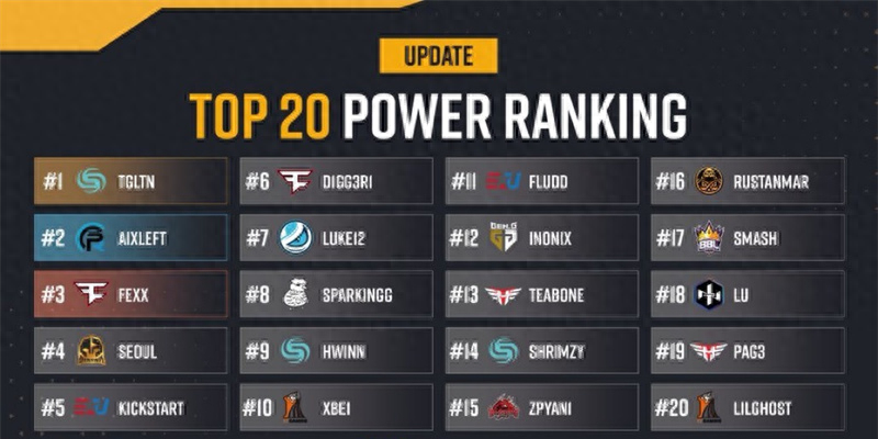 PUBG选手世界排名更新,4AM无人上榜,PCL选手普遍下降
