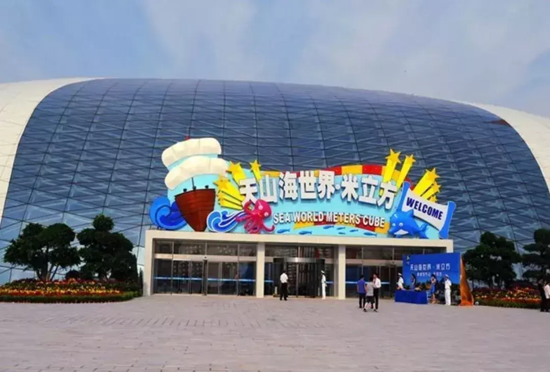 天山海世界·米立方,地处天津市与滨海新区的城市轴心之上,占地130余亩,建筑面积约4.3万㎡,建筑外观犹如一颗晶莹剔透的稻米,因此以“米立方”命名。