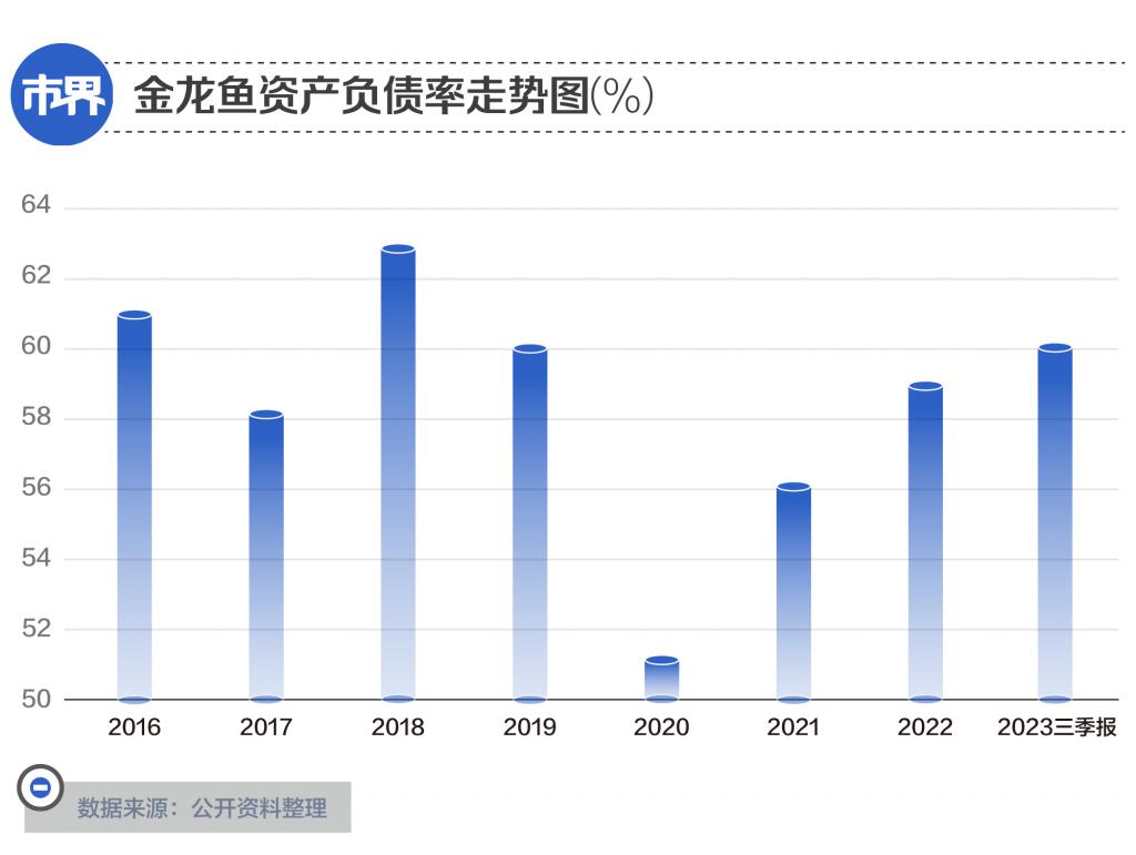 重资产模式与不断跑马圈地,使得金龙鱼的资产负债率居高不下,常年保持在 60% 左右,只有 2020 年上市后降至 51%,但此后便随着项目的建设逐年增高,去年第三季度达到 60.16%。作为对比,海天味业的资产负债率长期保持在 30% 左右,且近几年不断走低,2023 年第三季度只有 19.62%。