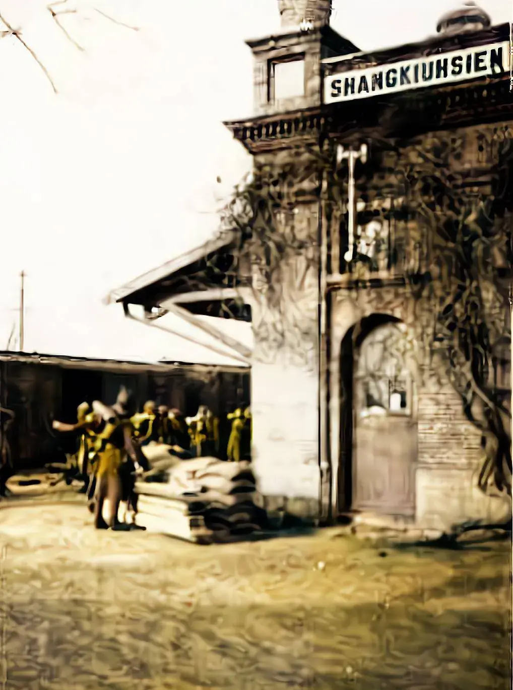 1938年5月29日商丘城沦陷,大量日本鬼子拥进商丘城内,日本鬼子抢先占领了商丘火车站。商丘火车站内一角,不少日本鬼子正在装缷军用物资。