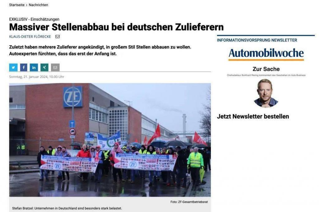 另一大汽车零部件龙头企业采埃孚,今年也被消息人士指出正计划在未来六年内裁减德国员工 12000 人,相当于德国所有员工数量的四分之一,同时关停盖尔森基兴和 Eitorf 在内的两座工厂。