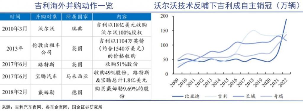 自 2005 年起,一部分车企试图通过海外并购和正向研发的方式,在发动机等核心领域进行追赶,比如吉利收购沃尔沃、路特斯、戴姆勒、上汽并购罗孚汽车 / 名爵、东风入股法国标致雪铁龙等。