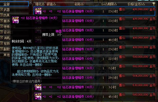 在DNF中,增幅12是许多平民玩家们可望而不可即的地步,由于产量低价值高的远古,+12钻石装备增幅券的价格从来没有低过,拍卖行的售价已经达到了5E金币,部分大区的价格更高。