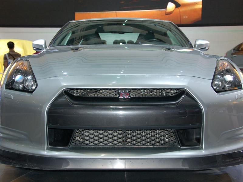 GTR R35的造型还算平易近人。以往的横向分布大灯进化成了纵向分布大灯,由保险杠一直延伸至前翼子板。中网格栅被简化为一条缝,火红的字母R跳跃中央,这是让所有超级跑车胆寒的标志。与大众的U型大嘴类似,GTR R35采用倒U型大嘴设计,并搭配黑色车漆,颇有几分邪恶。