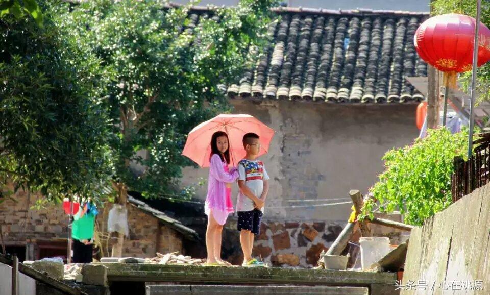 烈日下,你举起那个小红伞,为我遮阳。
