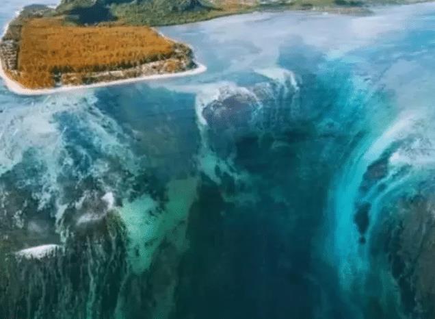 这一张图其实是比较恐怖的,因为在大海当中我们发现了一个瀑布,虽然也有着一些比较庞大瀑布,但是如果在大海当中看见这样的瀑布,相信内心除了震撼就是害怕了吧。