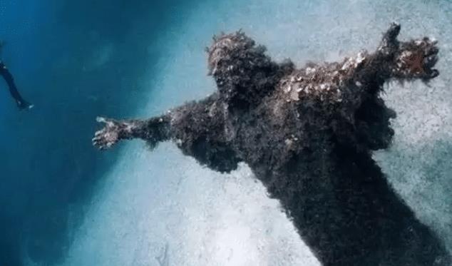 看看这个海里面的雕像,其实这是一个基督雕像,如果你在深海看见它张开双手迎接你,是否会感觉全身一阵寒冷?