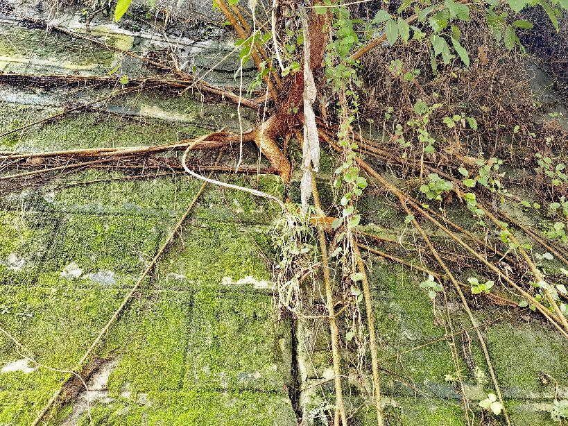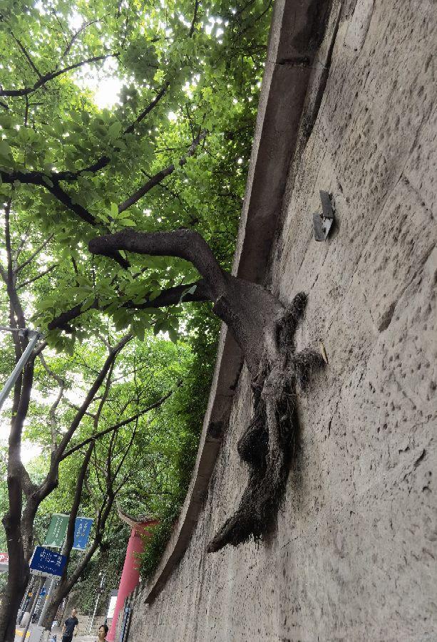 在渝中区中山二路的枇杷山公园旁的石壁,在中山四路的石墙,在南岸区铜元局的石壁上。。。到处可见这些具有数十年历史的黄桷树。
