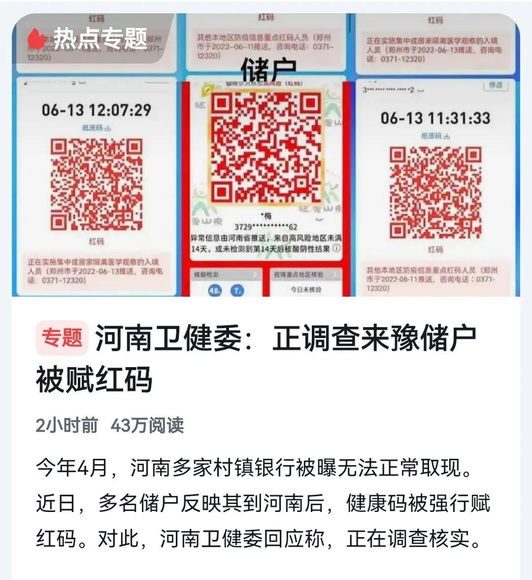 3、河南村镇银行背后的势力难道不细思极恐?能够让多个省份的储户绿码变红码,这是多大能量?细思极恐啊!滑天下之大稽啊!原来是可以人为操控的!