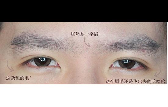多余的眉毛一定要该刮得刮,该剪的剪。男生比较适合英气的剑眉,所以你们要清楚剑眉的走向哦,实在修不好可以先用眉笔框出框框再修。