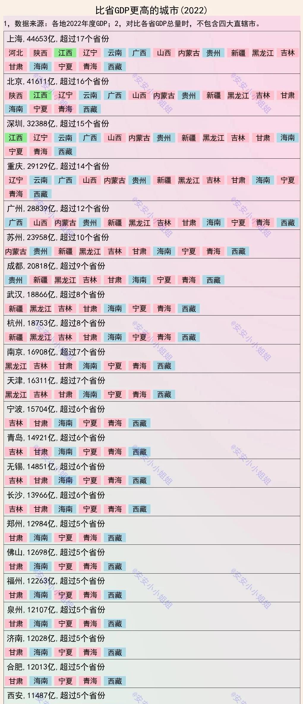 总结起来,根据2022年的GDP数据,我们可以看到许多中国城市在GDP总量上超过了许多省份,反映了这些城市的经济实力和发展潜力。