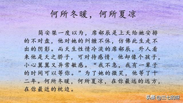 她容貌并不惊艳,但笑颜纯净,直抵人心。后来,她无悲无喜,麻木度日,他淡漠寡情,沧桑满怀。造化弄人,她的劫难是遇到了他,因为爱的深刻,在素白年华里她历经世事,受尽苦难。曾经他与她隔着千山万水,后来近在咫尺却仍然遥不可及,这本真的太好看了,强推!