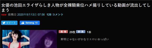 早在8月,日本娱乐周刊就曾宣布某女明星发布不雅视频。当时有人想把视频卖给娱乐杂志,但没有人买,所以他决定把视频放到网上。当时有媒体报道称,这位女演员是日本娱乐界非常受欢迎的电影演员。连同其他参考资料,它们似乎都指向池田依来沙。