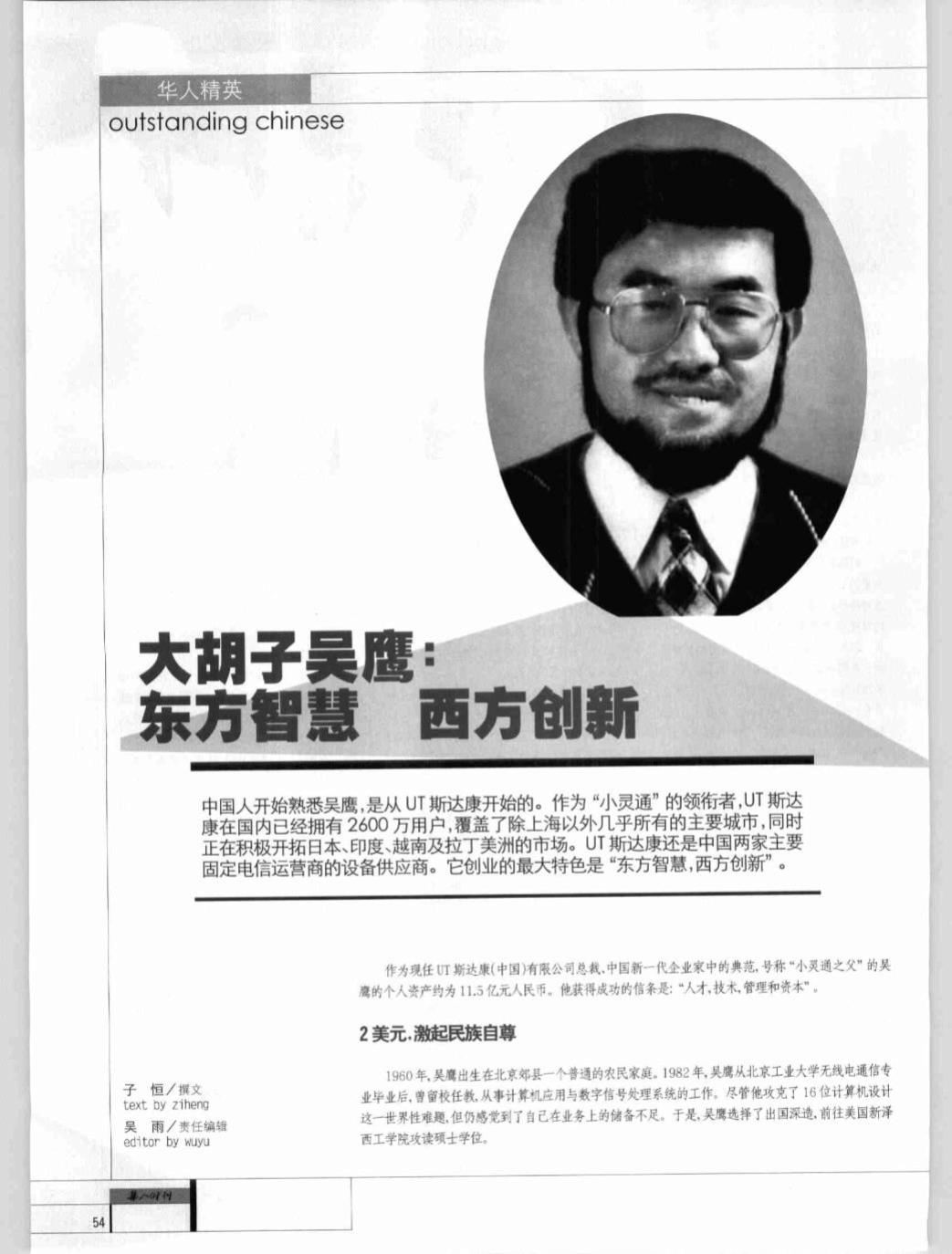 吴鹰登上美国报刊封面