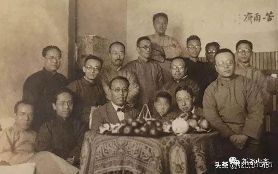 这是1929年元旦,在苦雨斋聚会喝日本屠苏酒的合影留念。北大“三沈”到齐,“五马”