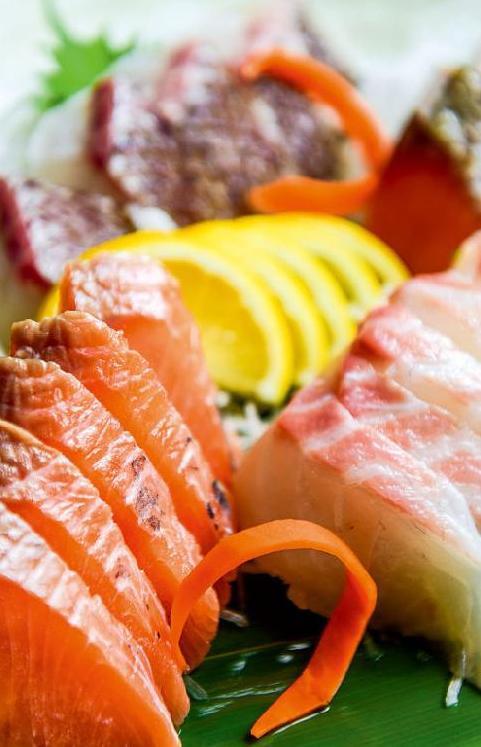 ●令人垂涎欲滴的刺身。刺身,也被称为鱼脍、鱼生、生鱼片,蘸调料直接食用。