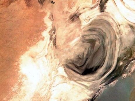 就在人们对罗布泊一个个未解之谜争论不休时,一波未平一波又起。1972年7月,美国宇航局发射的地球资源卫星拍摄的罗布泊的照片上,罗布泊竟酷似人的一只耳朵,不但有耳轮、耳孔,甚至还有耳垂。对于这只地球之耳是如何形成的?有观点认为,这主要是50年代后期来自天山南坡的洪水冲击而成。洪水流进湖盆时,穿经沙漠,挟裹着大量泥沙,冲击、溶蚀着原来的干湖盆,并按水流前进方向,形成水下突出的环状条带。正因为干涸湖床的微妙的地貌变化,影响了局部组成成分的变化,这就势必影响干涸湖床的光谱特征,从而形成“大耳朵”。但也有人对此持不同观点,科学家们众说纷纭,争论不已,也许对于罗布泊的争论永远都不会结束。