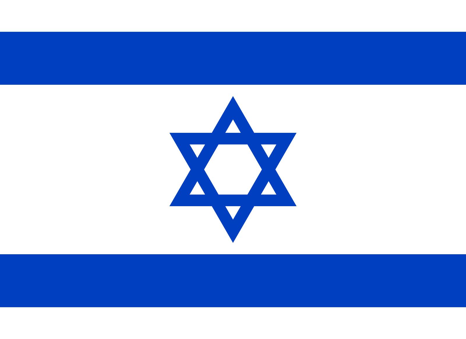 以色列国旗呈长宽比为3:2的长方形。旗面底色为白色,上下各有一条蓝色宽带。蓝、白两色来自犹太教徒祈祷时使用的披肩颜色。白色旗面正中有一个蓝色六角星是古代以色列王国君主大卫的标志。
