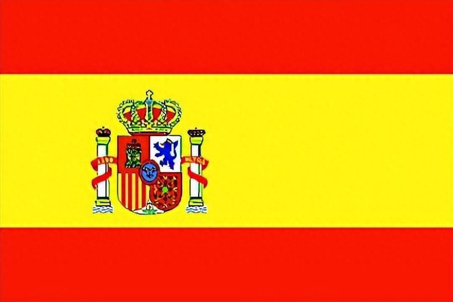 西班牙国旗呈长宽比为3:2的长方形。旗面自上而下由红、黄、红三个平行长方形组成。中间黄色部分占旗面1/2,上方和下方的红色各占旗面1/4。在中间黄色部分靠近旗杆一侧绘制有西班牙王室徽章。