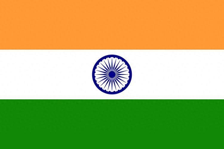 印度国旗呈长宽比为3:2的长方形。旗面由橙色、白色、绿色三个相等的横长方形上下排列组成。在中间的白色长方形中心绘有24根轴条的蓝色法轮。橙色象征勇敢、献身精神,白色象征纯洁和真理,绿色表示生命和信心,法轮代表神圣、真理和进步。