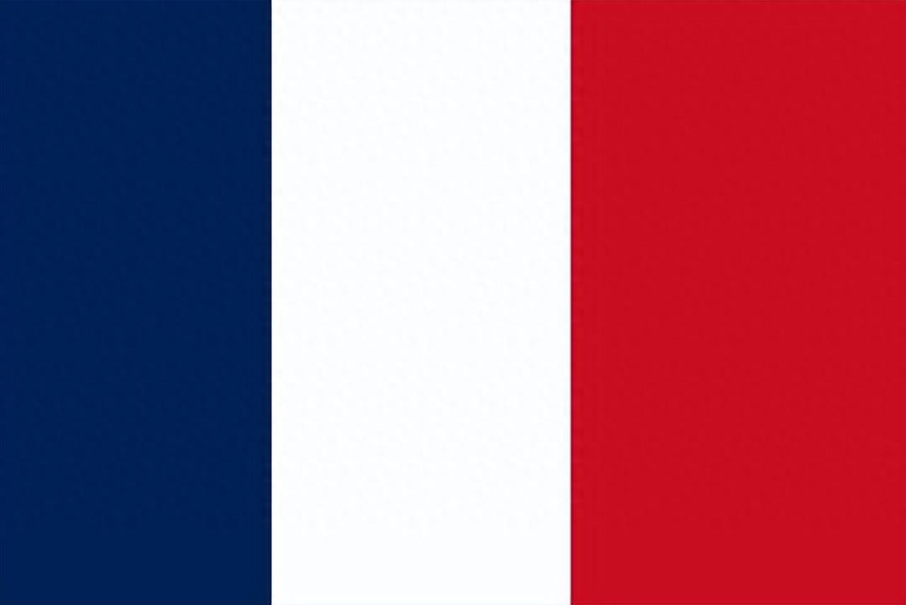 法国国旗呈长宽比为3:2的长方形。旗面由三个不同颜色的三个竖长方形构成:从左至右依次为代表自由、平等、博爱的蓝、白、红三色。