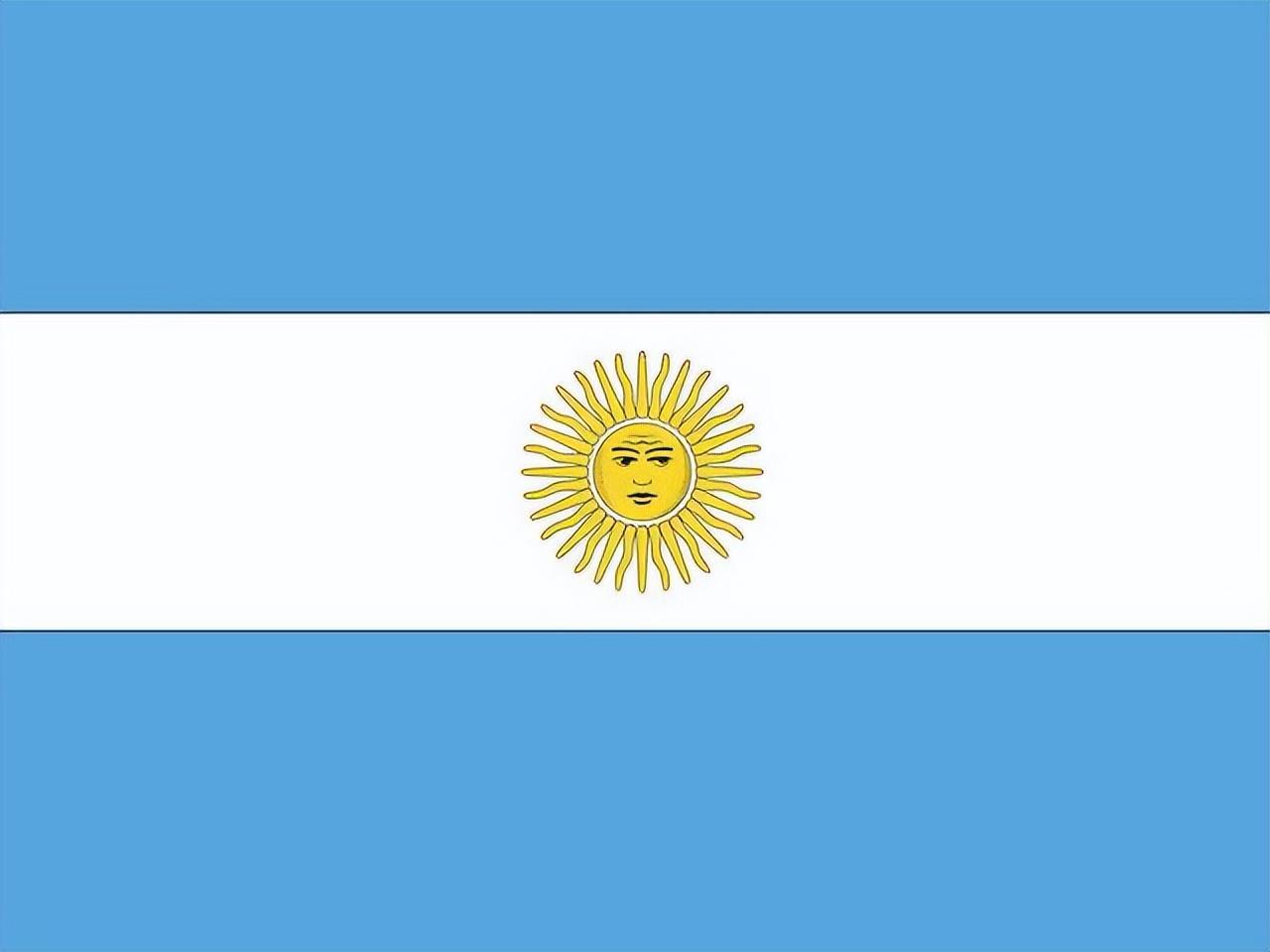 阿根廷自上而下由浅蓝、白、浅蓝三个平行相等的横长方形组成。在白色长方形中间绘有金色的太阳。浅蓝象征正义,白色象征信念、纯洁、正直、高尚,太阳象征自由和黎明。