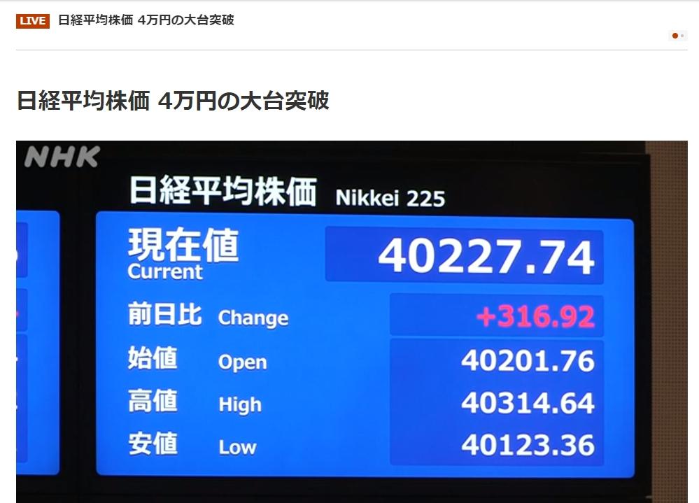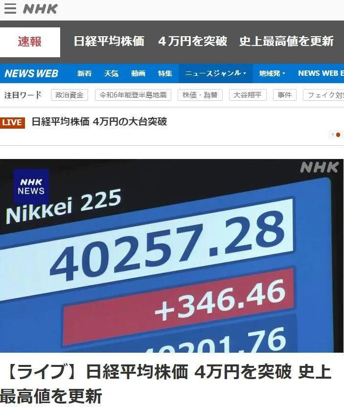 最近红得发紫的日本股市,还在继续涨。在上月刚刚打破了尘封 34 年的历史高位纪录后,今天(3 月 4 日)上午 9 时,日本东京证券市场开盘,日经 225 指数高开,史上首次冲上 4 万点。