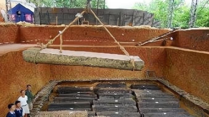 发倔工作进行到一半的时候,不幸赶到了雨季提起来临,工人的首要任务变成了把积水运走,发倔的难度也大大的增大,无奈之下,专家们只能请来抽水机过来帮忙,这也让一直侵泡的土壤变得十分松软,等积水的抽干得差不多时,专家们发现了期待已久的棺木,用手伸进泥浆中触摸,可以发现这些棺木是互相独立的,数量之多,完全颠覆的专家们的认知,这让他们原先认为的独立棺椁,瞬间变成了一处集体墓葬。同时也让专家们对这些棺木中长眠之人的。身份产生了极大的好奇心。