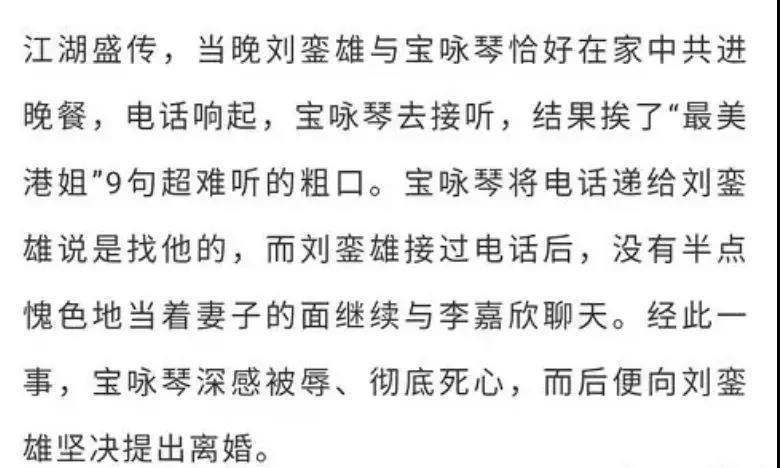 这样的偏爱之下,李嘉欣甚至数次打电话给刘銮雄的原配宝咏琴,破口大骂。