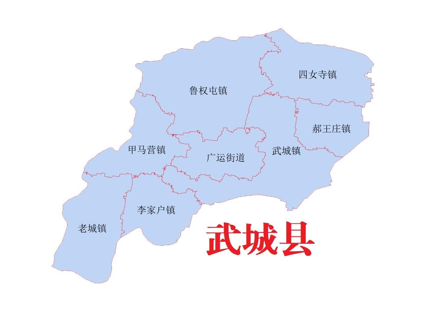 武城县总面积 748 平方千米,辖1个街道(广运街道)、7个镇(武城镇、老城镇、郝王庄镇、甲马营镇、四女寺镇、鲁权屯镇、李家户镇)。 截至2022年末,武城县户籍人口390970人。