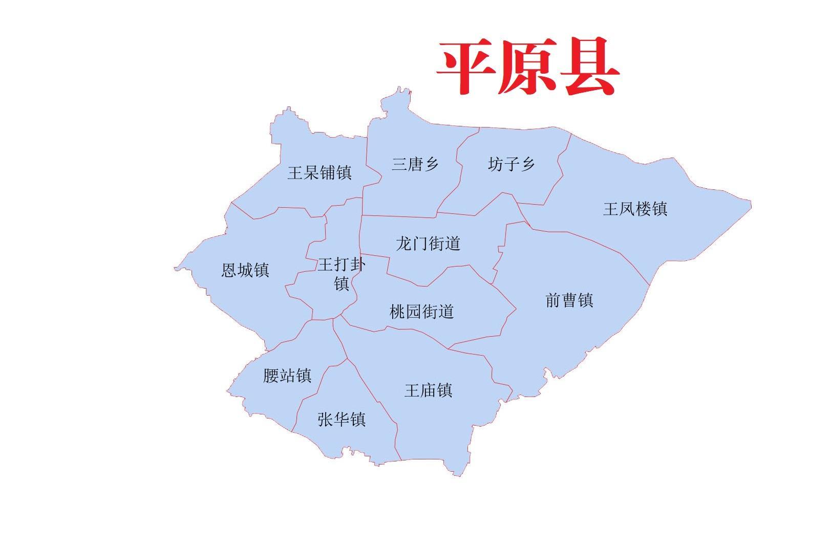 平原县总面积1047平方公里,辖3个街道(龙门街道、桃园街道、德原街道)、8个镇(王凤楼镇、前曹镇、张华镇、恩城镇、王庙镇、腰站镇、王杲铺镇、王打卦镇)、1个乡(三唐乡)。 根据第七次人口普查数据, 截至2020年11月1日零时,平原县常住人口41.91万人 。