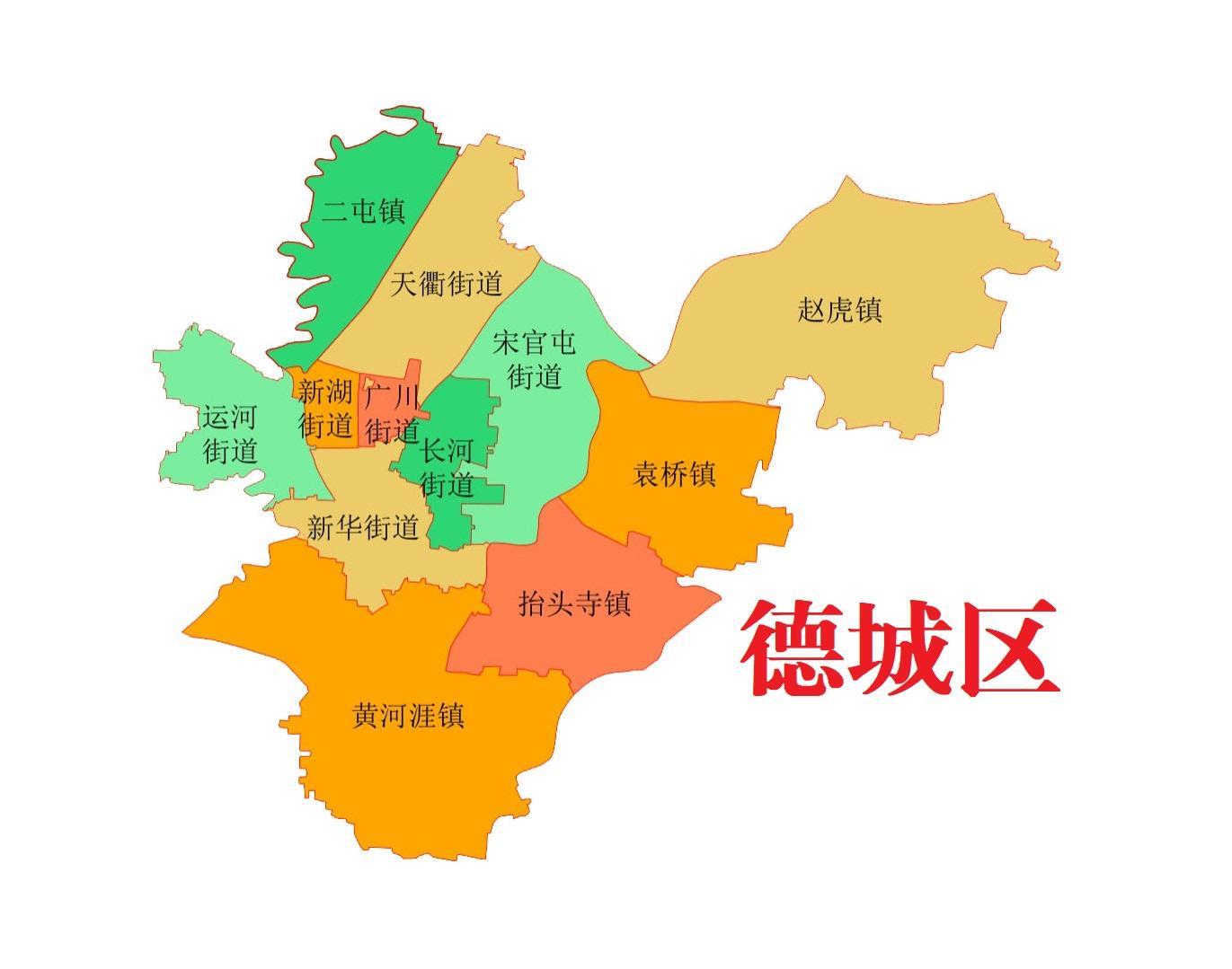 德城区,区政府驻新湖街道。地处德州市域西部、冀鲁交界处,东临陵城区,东南接平原县,南连武城县,西与河北省衡水市相连,北与河北省常州市毗邻,东北接宁津县。