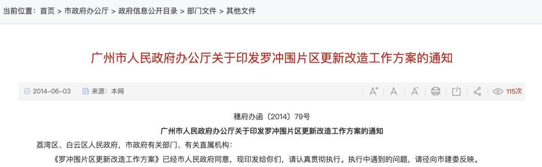 困局当前,罗冲围早已萌生突“围”之意。早在2014年,广州市人民政府办公厅就印发了关于罗冲围片区更新改造工作方案的通知,预计投入46亿元为罗冲围脱困,并将片区中的华侨糖厂地块纳入土储计划。