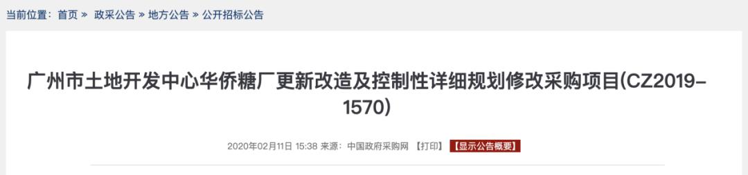 2020年2月,位于罗冲围片区的华侨糖厂更新改造项目进行招标,包含开发利用、产业发展等方案。