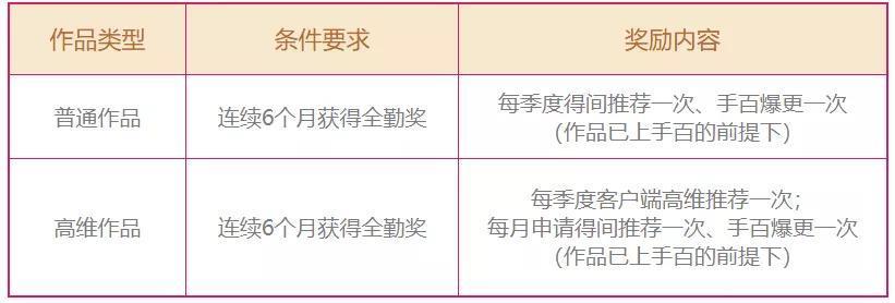 高维签约作品(分成、全版权保底、全版权买断)从晋级高维次月开始享受高维全勤奖。