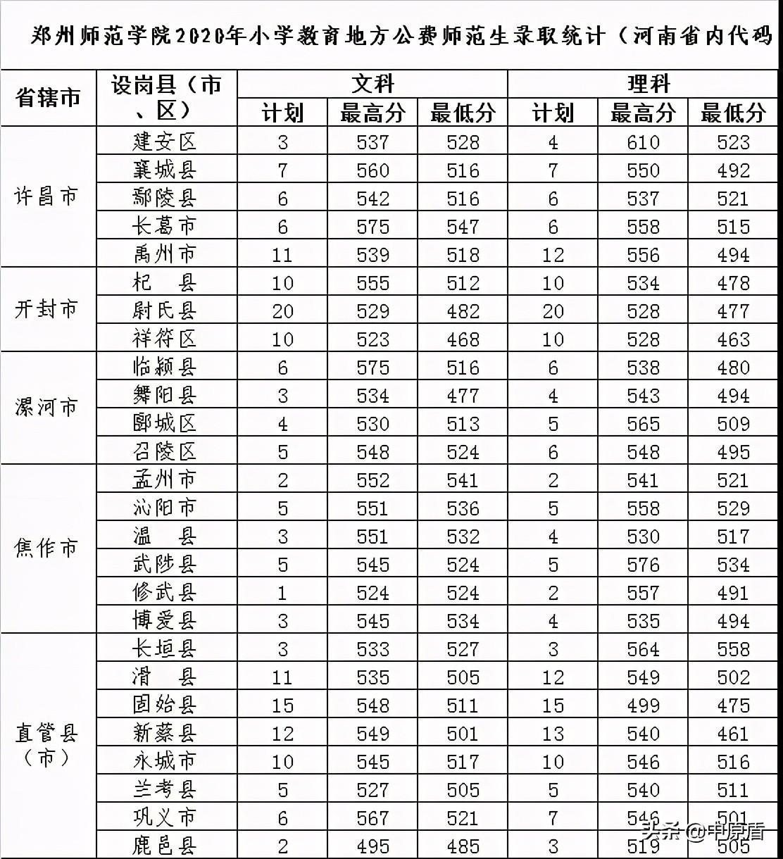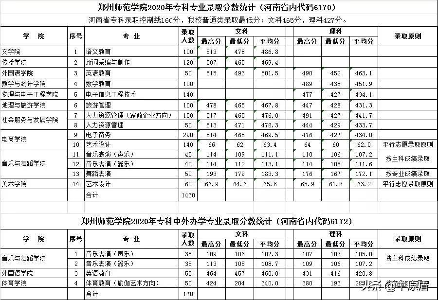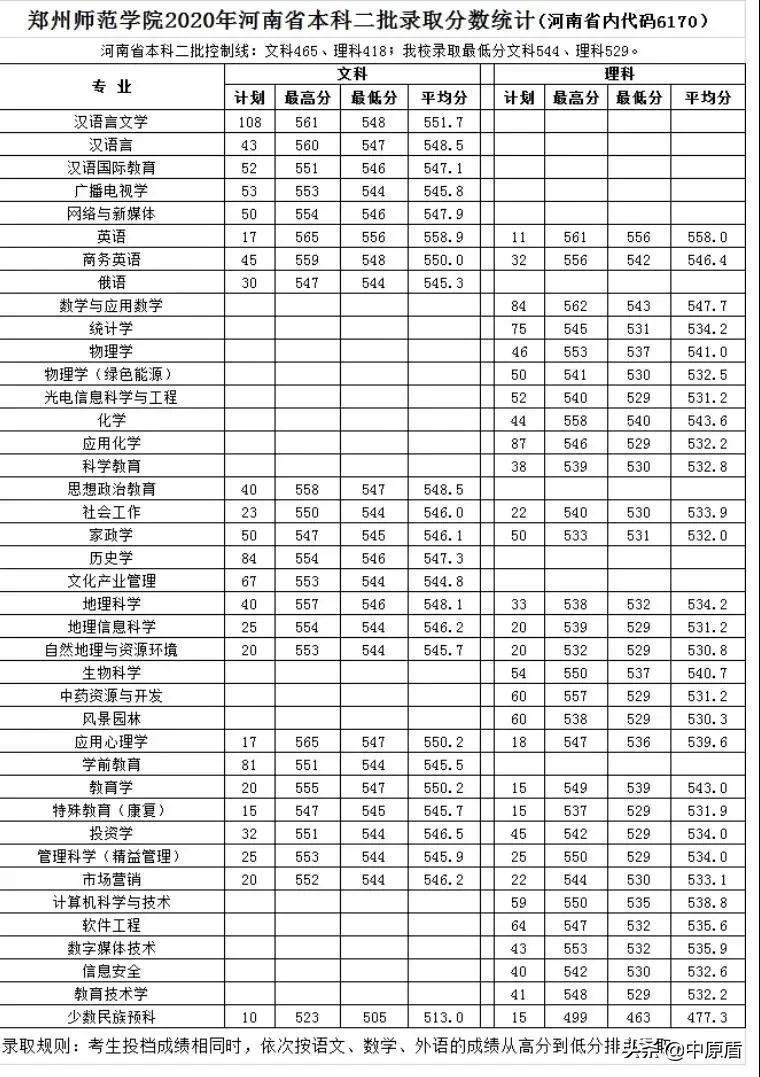2020年学校在河南省的录取最低分文科544分,高出省定二本线79分;理科录取最低分529分,高出省定二本线111分。请考生根据自己分数,参照对应的位次,踊跃报考郑州师范学院!