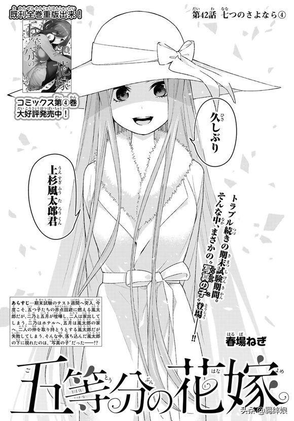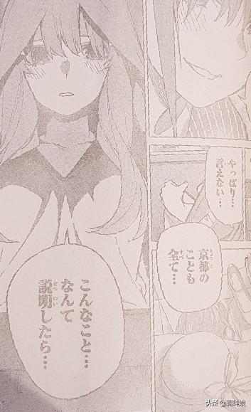 没想到这么快就公开了她的真实身份。是的,中野五月。从封面的C位到五胞胎的代表,女主气场可谓是非常强大,不如说除了气场以外其他方面都被打得体无完肤。